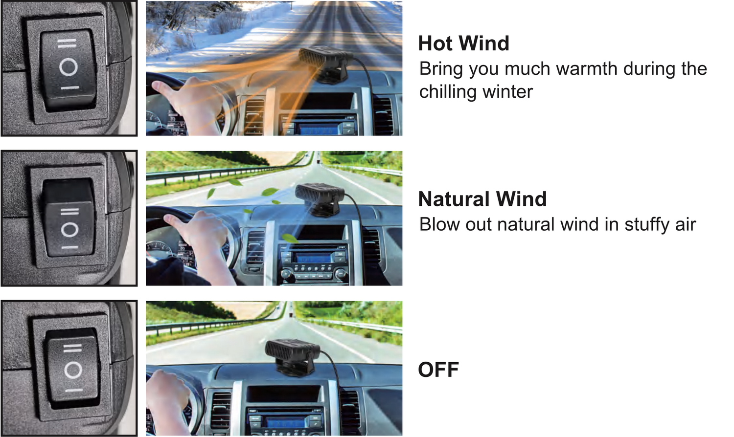 Our portable 2-in-1 car heater provides reliable warmth in winter and works as a cooling fan in summer. Compact, powerful, and dependable, it ensures comfort and safety all year round.